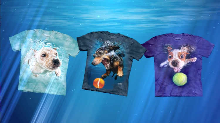 Global apparel company, The Mountain, wanted to drive sales and increase traffic to meet yearly revenue goals. To do so we launched new designs in the best-selling animal category and a completely new t-shirt line: “underwater dogs.”